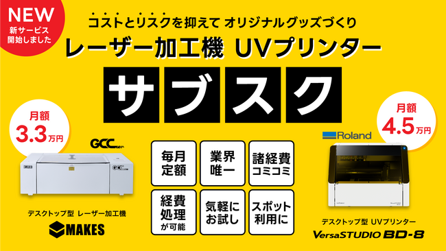 【初回特典あり】レーザー加工機とUVプリンターのサブスクを発表 ~コストとリスクを抑えてオリジナルグッズづくり~