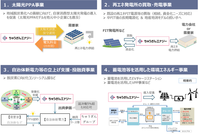 来年度中には、現在主力の屋根上太陽光オンサイトPPAだけでなく、需要地外から託送を行う太陽光オフサイトPPAや既設のFIT発電所の買取、系統用蓄電池事業など地域の脱炭素社会に貢献していくための領域拡大を図っていく方針です。