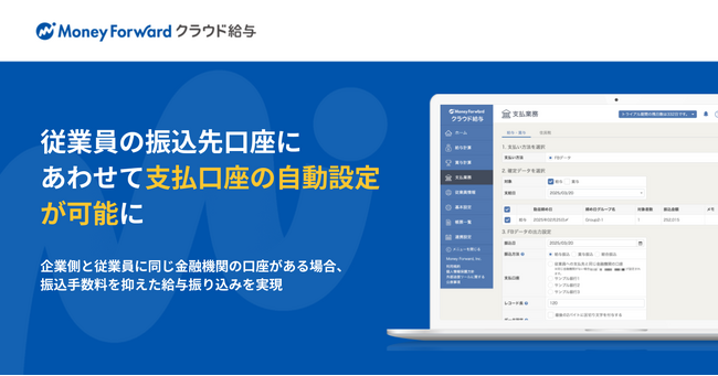 株式会社マネーフォワードは、『マネーフォワード クラウド給与』に新機能を追加し、従業員の振込先口座に合わせて支払口座を自動設定できるようにしました。これにより、企業と従業員が同じ金融機関を利用している場合、振込手数料を削減できます。