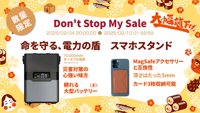 楽天市場「Show !t」冬の特大キャンペーン開催!アウトドアも災害時も頼れるポータブル電源や、カード3枚収納のスマホスタンドなど、魅力的なアイテムが勢ぞろい!このチャンス、見逃せない!