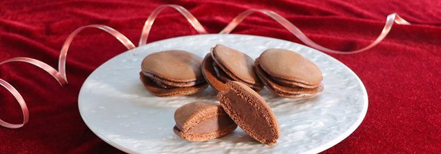 以前より大好評いただいております生どら焼きよりも一回り小さく食べ切りサイズにした「ショコラどら焼き」は洋酒の香りも楽しめる大人向けの新商品です。