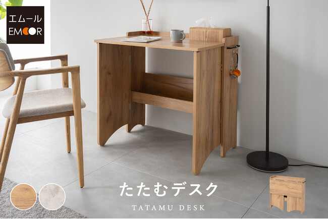 「たたむ家具」に専門性を持った家具ブランドEMOOR(エムール)より、限られたスペースを最大限に活用する構造で実用性と収納性を両立した「たたむデスク」が新登場。
