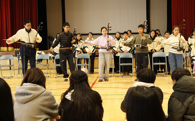 6年生23人が中国民族楽器による演奏を鑑賞