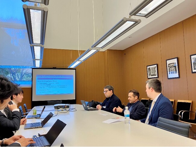 会議は2025年1月にスペイン大使館で行われ、キヤノンITSのサイバーセキュリティ関係者、セキュリティソリューション「ESET」のスペインでの販売代理店であるOntinet.com社のリサーチャー、スペイン大使館経済商務部担当者が出席しました。キヤノンITSのサイバーセキュリティラボは2020年頃からOntinet.com社とサイバー脅威に関して情報連携や共同調査を行っており、今回の会議はOntinet.com社の呼びかけで実現しました。
