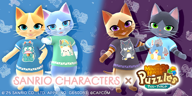 iOS/Android『モンスターハンターパズル アイルーアイランド』は、本日2025年2月6日(木)より、「サンリオキャラクターズコラボ記念ログインボーナス」として、サンリオキャラクターズ×モンスターデザインのTシャツ(アバター用の体装備)を2週連続で配布いたします。