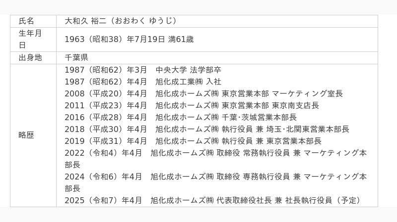 (3)新代表取締役社長 大和久 裕二の経歴(2025年2月6日現在)