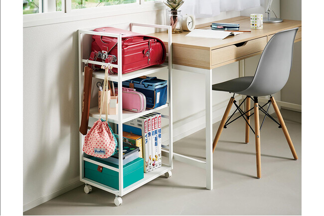 かさばる物を収納することができる目隠しトールワゴン3段。