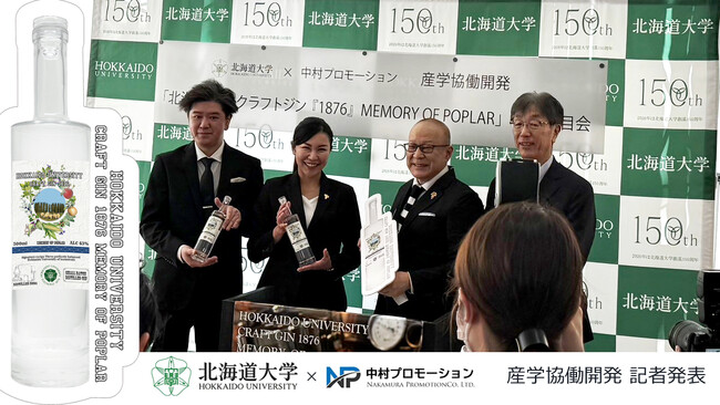 株式会社中村プロモーション https://www.nakamura-prm.com/ (本社060-0909 札幌市東区北9条東1丁目1-14 中村BILD 1F)、北海道大学 https://www.hokudai.ac.jp/ は、産学協働開発として札幌キャンパス内の植物を使用したクラフトジンを手がけました。