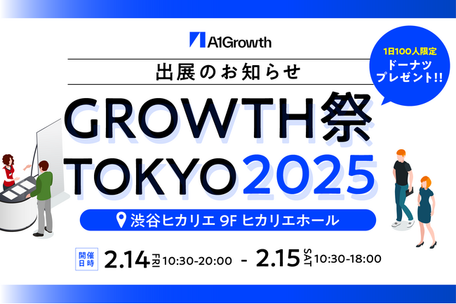 スタートアップや新規事業の急成長グロース支援に特化したエージェンシー、株式会社A1Growth(本社:東京都世田谷区、代表:堀田遼人)は、この度2025年2月14日(金)と15日(土)の2日間、渋谷ヒカリエ ヒカリエホールで開催される株式会社YOUTRUST主催のカンファレンスイベント「GROWTH 祭 TOKYO 2025(以下、「本イベント」)」にシルバースポンサーとして出展します。