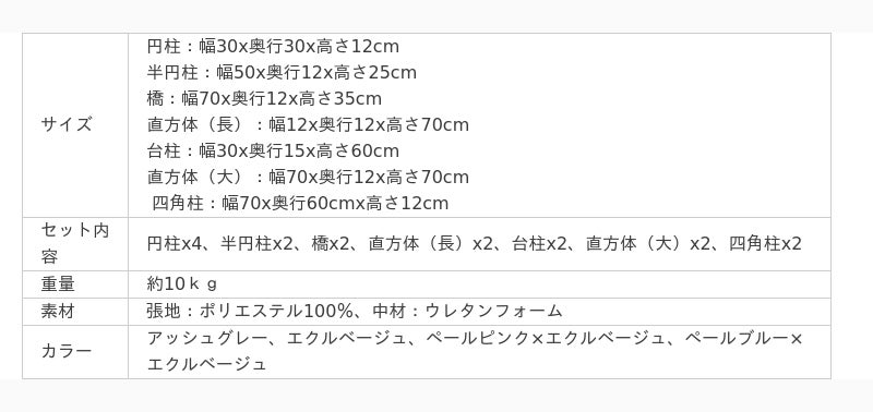 『つみきソファ』は安心して遊んでもらえるように、中材に柔らかめのウレタンを使用しております。その為、怪我の心配がなく、床に落としたりぶつけたりしても傷つくことはありません。また最も重いパーツでも1.8kgと軽量になっているのでお子様1人で安全に持ち運ぶことが可能です。また軽量なので幅広い年齢で遊ぶことが可能です。