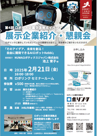 ロボット開発、部品製造、ソフトウェア開発、販売代理店、商社等、ロボット産業に携わる方やコミュニケーションロボットの導入を検討している施設・個人の方に向けた講演会(NUWAロボティクスジャパン株式会社による講演)・懇親会を開催いたします。