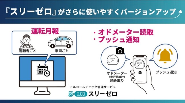 AIoTクラウドのアルコールチェック管理サービス『スリーゼロ』が、新たに月報作成機能(※3)の追加などアップデート