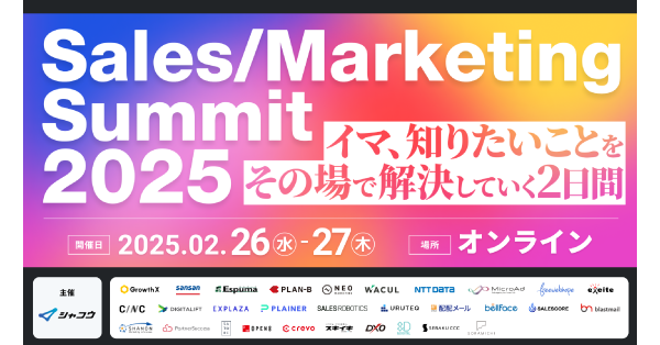 2月26日(水)、27日(木)開催の「Sales / Marketing Summit 2025」に登壇いたします。