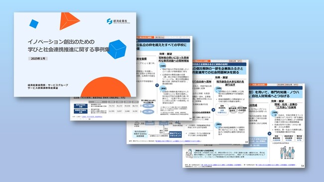 2025年1月、経済産業省商務・サービスグループサービス政策課教育産業室が、教育における企業や地域社会等との連携や民間資金を活用した「共助」の充実に向けて、「イノベーション創出のための学びと社会連携推進に関する事例集」を公表しました。