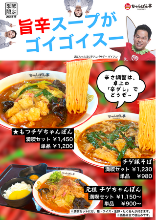 滋賀発祥の「近江ちゃんぽん亭」では、2025年2月13日(木)より、冬限定「2025冬季 旨辛チゲフェア」を開催!