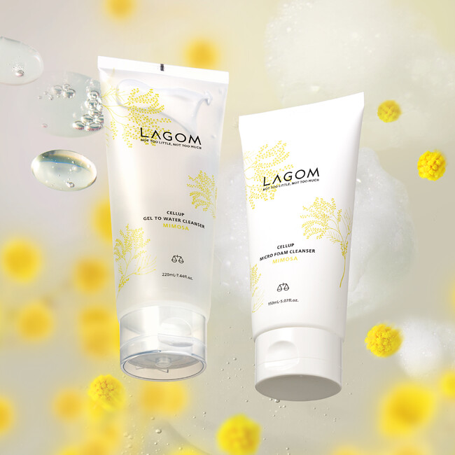 うるおいがいつも存在する肌へ導く韓国発スキンケアブランド LAGOM〈ラゴム〉から、 水のようなみずみずしさで素早く洗える、ブランド人気 No.1の朝用洗顔料ジェルトゥウォーター クレンザーと、 生クリームのようなもっちり泡でメイク汚れまで落とす夜用洗顔料マイクロフォーム クレンザーに、新しい季節のはじまりを予感させる、満開のミモザの香りが数量限定で登場。