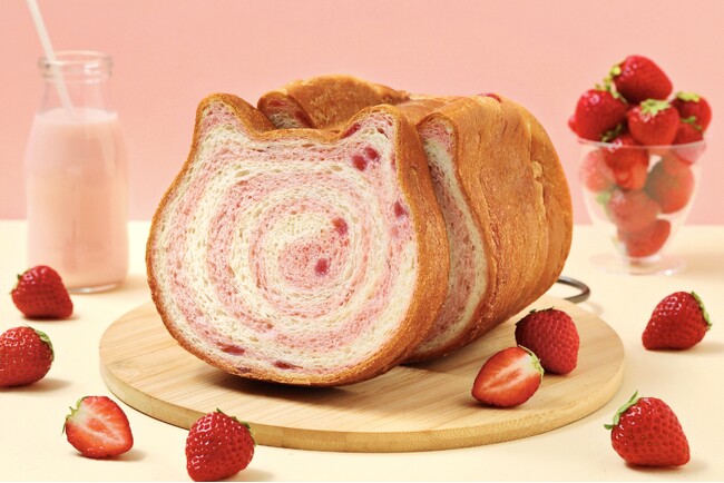 SNSで人気の『ねこねこ食パン』の3月限定フレーバー『ねこねこ食パン いちご牛乳』が期間限定で登場。「いちご牛乳」をイメージした味わいとぐるぐる模様で可愛らしいビジュアルをお楽しみいただけます。