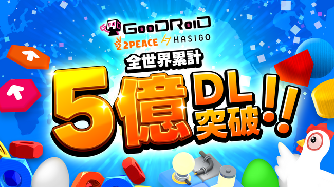 株式会社GOODROID(本社:東京都目黒区、代表取締役社長:松田和彬)は、ハイパーカジュアルゲームスタジオ「2PEACE」と「HASIGO」の提供するハイパーカジュアルゲームアプリが全世界で累計5億ダウンロードを突破したことをお知らせいたします。