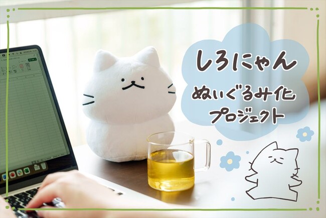 イラストレーター猫原のしさんが描く人気キャラクター「しろにゃん」がぬいぐるみ化!