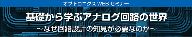 株式会社オプトロニクス社(東京都新宿区 代表取締役社長:島田 耕)は2月19、20、21日、あらゆる技術分野で習得が求められるWEBセミナー「基礎から学ぶアナログ回路の世界」を開催します。