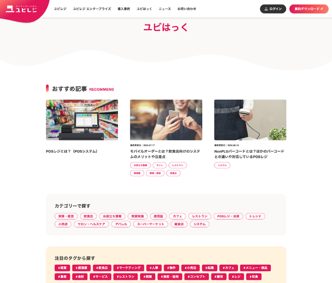 “カンタンがいちばん”がコンセプトのクラウドPOSレジ「ユビレジ」を提供している株式会社ユビレジ(本社:東京都渋谷区、代表取締役:木戸 啓太)は、これまで別々に運営していた「レシピブック」と「POSレジガイド」の2つのオウンドメディアを統合し、新たなWebメディア「ユビはっく」を2025年2月13日よりスタートいたします。