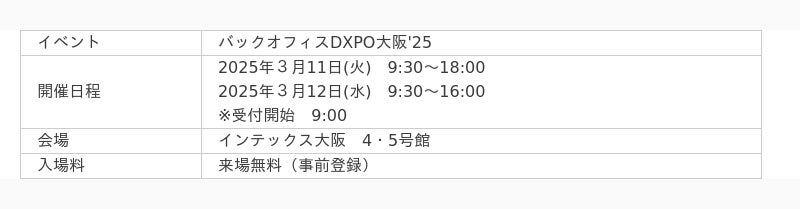 本展示会は、総務・人事・経理などのバックオフィス部門における業務効率化・働き方改革・経営基盤強化のためのDXソリューションが一堂に集う、DX推進を検討する企業に向けた関西最大級の商談型展示会です。