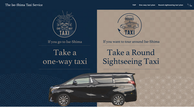WEBサイトは、ラグジュアリーホテルが多く、伊勢志摩から2~3時間圏内の京都、大阪からの需要を見込んだワンウェイタクシープラン(伊勢志摩までの片道送迎)と、伊勢志摩で滞在するホテルを起点としたラウンド観光タクシープラン(伊勢志摩での観光周遊)を用意しています。地域での連携タクシー会社は、株式会社三交タクシーと野呂自動車有限会社の2社で、今後も連携タクシー会社を拡大する予定です。
