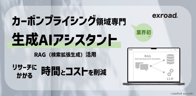 カーボンクレジット・排出量取引制度オールインワン情報サービスを提供する株式会社exroad(エクスロード、本社:東京都港区、代表取締役:木村圭佑、以下当社)は、業界初(※1)となる“カーボンプライシング領域専門の生成AIアシスタント“のサービス提供を開始いたしました。当社サービス内に蓄積された良質で膨大なデータを学習させた対話型AIアシスタントにより、これまで以上に情報収集のスピード、正確性、網羅性の向上を実現した体験を提供します。また、専門用語が多い本領域において、日本語での壁打ちやブレインストーミングも可能となります。
