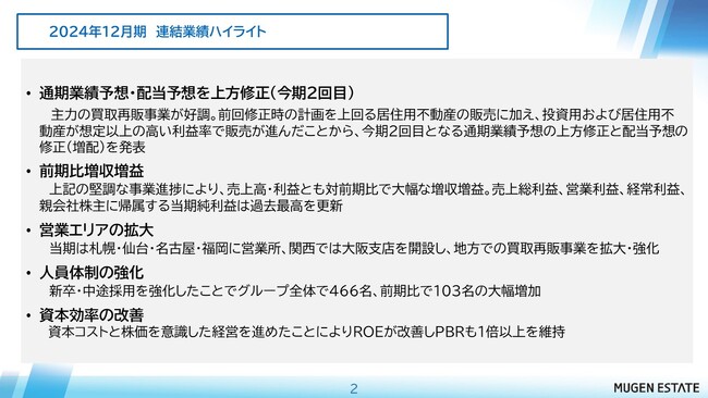 ムゲンエステート、2024年12月期決算について
