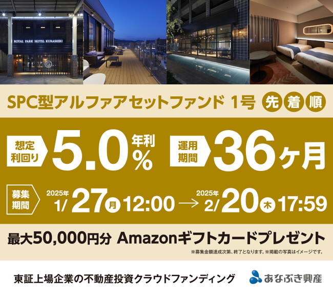 一口10万円からの少額投資可能!募集期間は2025年2月20日(木)17:59まで