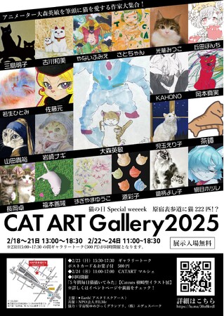 The "Cat Art Gallery Special Weeeek" features artworks centered on the theme of "Cat Day" (February 22nd). Works by Hidetoshi Ohmori and 22 other cat-loving artists will be showcased.