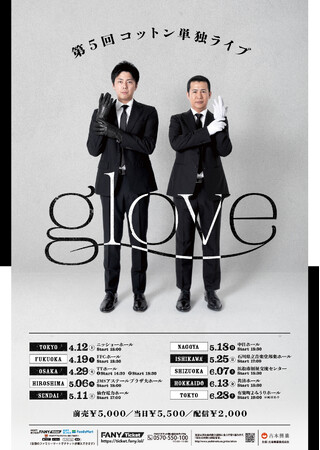 過去最大規模!全9都市での開催決定 第5回コットン単独ライブ「glove」2月24日(月)よりFANYチケットにて4月公演の先行受付開始