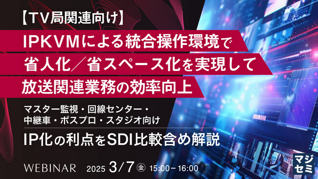 マジセミ株式会社は「【TV局関連向け】IPKVMによる統合操作環境で省人化/省スペース化を実現して放送関連業務の効率向上」というテーマのウェビナーを開催します。