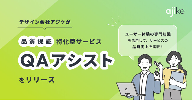 UXコンサルティング、事業デザイン、UIUX改善などを手がけるサービスデザイン会社の株式会社アジケ(本社:東京都目黒区、代表取締役:梅本周作、以下:「アジケ」)が“品質保証(Quality Assurance)”に着目し、ユーザー体験の専門知識を活かした新サービス「QAアシスト」をリリースいたします。
