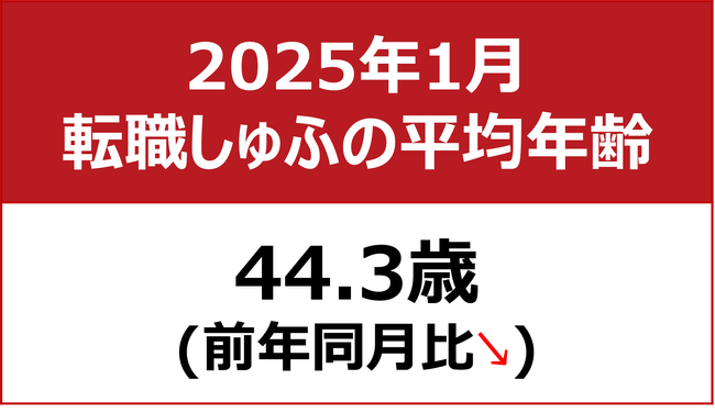【転職しゅふの平均年齢調査 2025年1月】44.3歳(前年同月比-0.6歳)