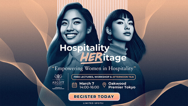 シンガポールに拠点を置き、世界40ヵ国230都市以上で約980のプロパティを展開するホスピタリティグループであるThe Ascott Limited(アスコット)(日本での運営会社:株式会社アスコットジャパン/東京都港区、代表取締役社長:クリスチャン・ボーダー)では、ホスピタリティ業界で活躍する女性の未来を応援することを目的としたイベント、「Hospitality HERitage - Empowering Women in Hospitality ~ホスピタリティ業界で輝く女性たちの未来」を、2025年の国際女性デーのテーマである「すべての女性と少女のために ー 権利、平等、エンパワーメントを」に沿って、2025年3月7日(金)に開催いたします。