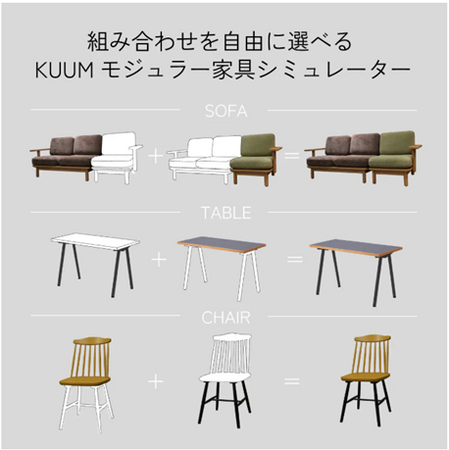 素材やカラーの組み合わせを自由に選んで、理想の家具を創造できる、ENENオリジナルの「KUUMモジュラー家具シミュレーター」提供開始