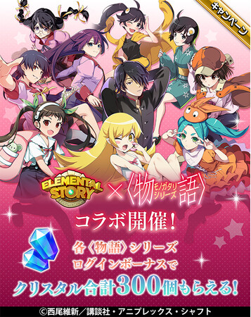 エレメンタルストーリーが〈物語〉シリーズとコラボ!ログインボーナスでコラボ召喚10連分のクリスタルをGETしよう!さらに2月22日(土)には豪華アイテムをプレゼント!
