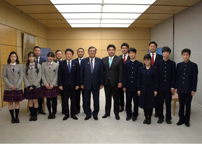 2025年2月17日(月)、第二回全国高校生政策甲子園で最優秀チームに選ばれた佐久長聖高校(所在地:長野県佐久市岩村田951番地)と東京学芸大学附属高校(所在地:東京都世田谷区下馬4丁目1番5号)の生徒7名が、石破茂首相へ表敬訪問を行いました。