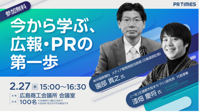 ~「今から学ぶ、広報・PRの第一歩」と題したセミナーを、広島事業者向けに2月27日15時から広島商工会議所にて実施~