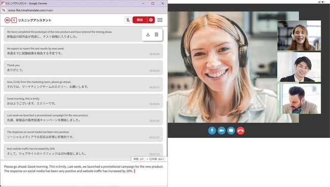 英語会議における言語障壁を低減し、迅速な意思決定を支援する「みらい翻訳 リスニングアシスタント(会議翻訳)」正式提供開始