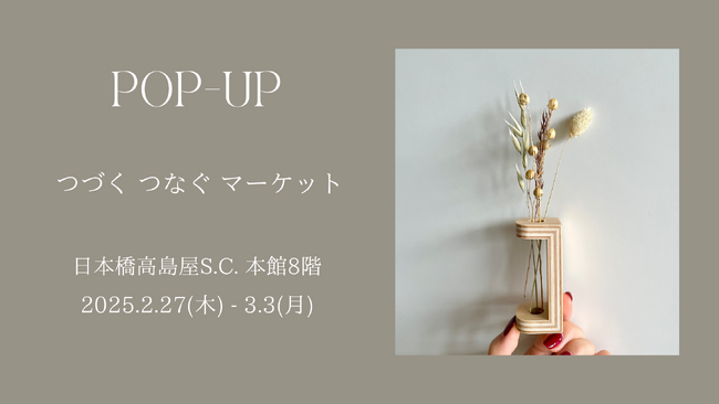 滝澤ベニヤ株式会社(本社:北海道芦別市 / 代表取締役 瀧澤 貴弘)は、2025年2月27日(木)~3月3日(月)に日本橋 高島屋S.C.にて開催予定の「つづくつなぐマーケット vol.8」に初出展いたします。