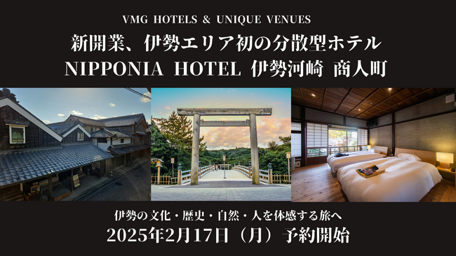 バリューマネジメント株式会社(本社:東京都千代田区、代表:他力野 淳、以下、当社)は、伊勢神宮参拝の旅に、新たな滞在価値を提供する「NIPPONIA HOTEL 伊勢河崎 商人町」(以下、当ホテル)について、4月25日(金)に開業(予定)することをお知らせいたします。2月17日(月)に公式ホームページを開設し予約受付を開始いたします。