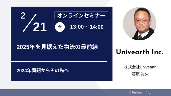物流DXプラットフォーム『LIFTI』を運営する株式会社Univearth(本社:大阪府大阪市北区、代表取締役:谷口 臨太朗)は、2025年以降の物流効率化法の本格施行に向けた準備や、2024年問題のおさらいをテーマとしたセミナーを2025年2月21日(金)に開催いたします。