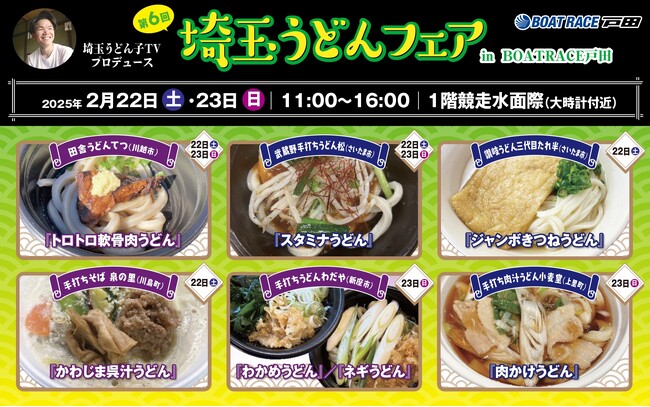 目指せ! 日本一のうどん県 全品税込み500円! 2月22日(土)2月23日(日)の2日間、BOAT RACE戸田に埼玉県内の激ウマうどん6店舗が集結!