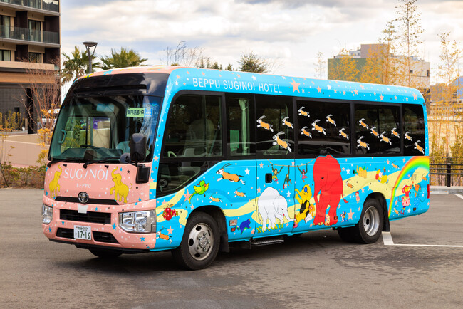 杉乃井ホテルは別府市のアート振興の取り組みに共感し、大分県および別府市にゆかりのあるアーティストの支援を目的とした新たな施策を展開いたします。現在開催中の「杉乃井アートギャラリー」に続く第二弾として、アーティストによるオリジナルイラストを装飾したラッピングバスの運行を開始いたします。