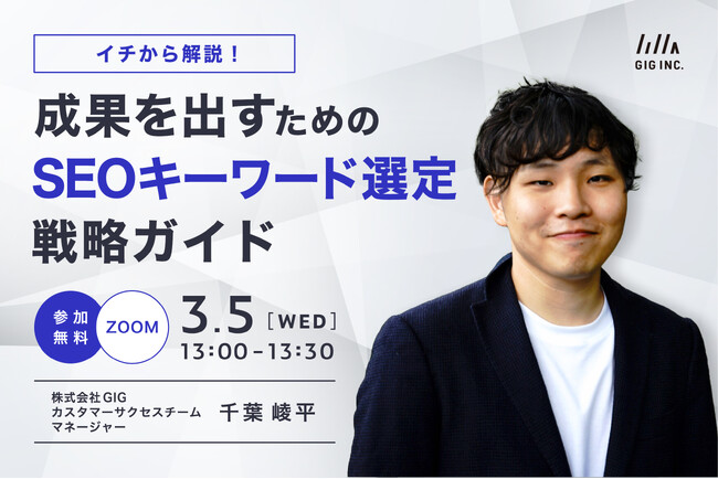 株式会社GIGは、成果を出すキーワード選定方法や、検索順位の上げ方に悩む運用担当者向けに、SEOキーワード選定についてのウェビナーを開催します。参加費無料、事前登録制。