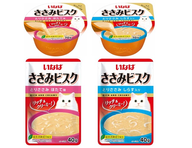 なめらかで濃厚なスープタイプの猫ちゃん用「ささみビスク」、カップとパウチが登場!