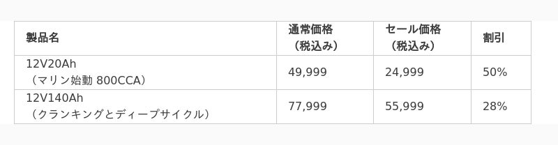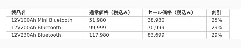 3月31日(月)まで、公式サイト、Amazon公式店や楽天直営店でも新品に対してビックセール実施中!Bluetoothシリーズ、ゴルフカート用&マリン始動用バッテリーなどが今までない特価!