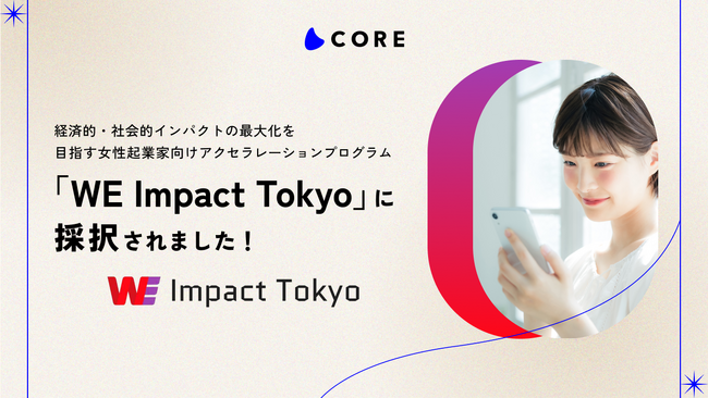 株式会社CORE(所在地:東京都中央区、代表:尾崎莉緒)が経済的・社会的インパクトの最大化を目指す女性起業家向けアクセラレーションプログラム「WE Impact Tokyo」に採択されました。